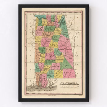 The ready-to-hang framed versions are crafted from durable solid wood with stunning stain finishes—perfect for those who appreciate the finer details. This piece not only enhances your space but sparks conversation about Alabama’s rich past every time someone catches sight of it.