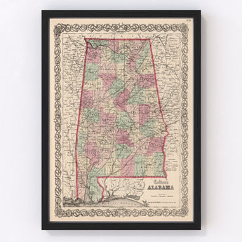Vintage Map of Alabama 1861
