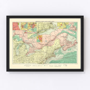 Vintage Map of American Atlantic Ports, 1922