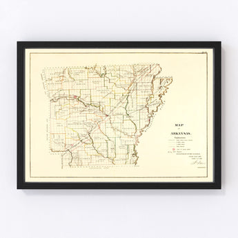 Rediscover the charm of 1866 Arkansas with our meticulously restored vintage map print. This artwork is more than just a decorative piece; it's an invitation to explore local history in style. Whether you're looking for the perfect gift for a history buff or adding a touch of class to your home or office, this map brings both tradition and sophistication.