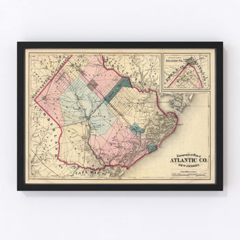 Discover the rich tapestry of history with our beautifully restored 1872 vintage map of Atlantic County, New Jersey. Whether you're familiar with its notable towns like Atlantic City or Hammonton, or just love delving into local stories, this piece is a delightful find for anyone who appreciates a touch of nostalgia. Crafted painstakingly by hand from high-quality materials, this map print fits gracefully into any home or office setting.