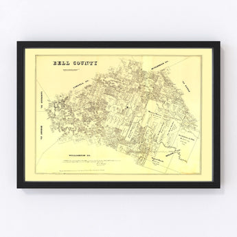 Featuring key locations like Belton and Temple, this map captures the essence of Bell County as it was over a century ago. Each print is crafted using high-quality materials, ensuring that it stands the test of time while adding an elegant touch to any room. Our framed maps come ready to hang in sturdy solid wood frames with a classic stain finish that enhances their traditional charm.