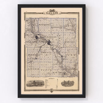 Discover a piece of history with our beautifully restored 1875 vintage map of Black Hawk County, Iowa. This artful reproduction brings to life the unique charm and historical significance of towns like Waterloo and Cedar Falls, making it a perfect fit for both home or office decor. Crafted using high-quality materials, each print promises lasting durability and is constructed by hand with meticulous attention to detail.