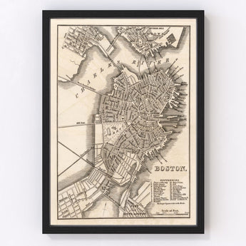 Vintage Map of Boston, Massachusetts 1844