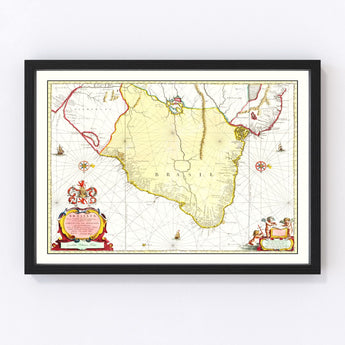 Discover a piece of history with our digitally restored vintage map of Brazil from 1665. This meticulously crafted print is more than just décor—it's an engaging conversation starter celebrating the rich stories and heritage of local history. Perfect for any home or office, its traditional look will add a touch of class to your space.