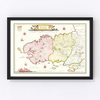 Vintage Map of Bretagne (Brittany), France 1665