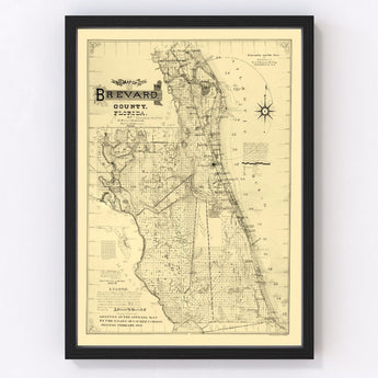 Step back in time with our beautifully restored 1893 map of Brevard County, Florida. Whether you're a history buff or just love unique decor, this piece is sure to be a favorite. It's crafted carefully by hand using high-quality materials, demonstrating the attention to detail that went into preserving such an important slice of local history.