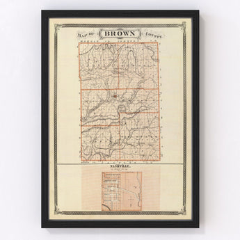 Discover the charm and rich history of Brown County, Indiana, with our meticulously restored 1876 vintage map. This piece perfectly captures the essence of the region, featuring notable locales such as Nashville, Bean Blossom, and Helmsburg. It's an ideal gift for anyone fond of local history or someone wanting a distinctive conversation starter in their home or office.