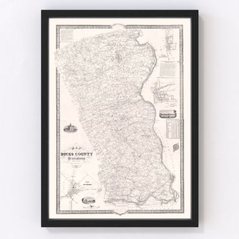 Discover the charm of Pennsylvania's history with this beautifully restored 1850 map of Bucks County. Known for its quaint towns like Doylestown, New Hope, and Quakertown, this piece brings a touch of local heritage to your space. Our team meticulously restored this map to preserve its authentic details while enhancing clarity and depth.