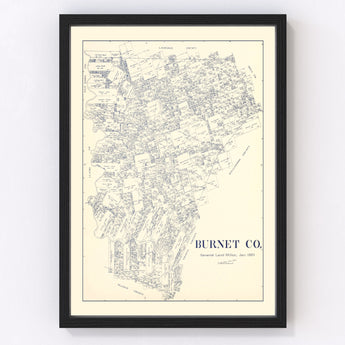 Whether it's for your home office or living room wall, this map makes an exceptional gift for anyone who appreciates history or simply loves Texas geography. It's not only a testament to craftsmanship but also provides an engaging conversation starter as guests ponder over the detailed landmarks and notable areas featured on this historical county map. Let it serve as a timeless connection to Burnet County’s storied past.