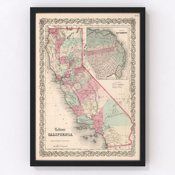 Step back in time with our beautifully restored 1861 vintage map of California. This unique piece is more than just a map—it's a slice of history that adds charm and a sense of nostalgia to your home or office. Capturing the essence of this vibrant state from over 150 years ago, it's an ideal gift for history enthusiasts or anyone who appreciates California's rich past.