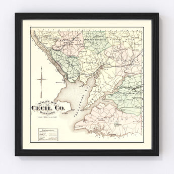 This vintage map is not just art; it's a thoughtful gift for those enamored by Maryland's rich heritage. Share the stories etched into each line and corner as you bring Cecil County's storied past into today’s world.