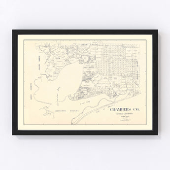 Perfect as a gift for those passionate about local history or as a distinctive centerpiece in your home or office decor, this map won’t just hang on your wall but start conversations. Celebrate Chambers County's rich heritage and add a touch of classic charm to any space with Ted's Vintage Art’s expertly crafted products.