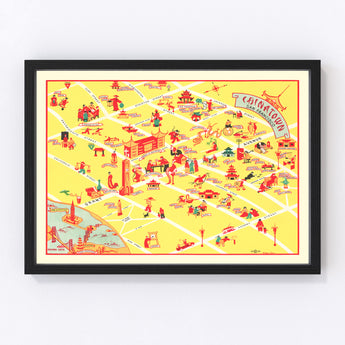 Step back in time with this stunning 1939 vintage map of Chinatown, located in the heart of San Francisco County, California. Lovingly restored by Ted's Vintage Art, this piece beautifully captures the vibrant history and culture unique to this iconic neighborhood. Crafted to perfection using high-quality materials, our prints are either framed with solid wood and stained or presented on a premium matte paper if you choose unframed.