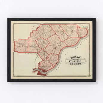 Discover the charm of Indiana's past with our beautifully restored vintage map of Clark County from 1876. It's a perfect nod to history lovers and anyone with ties to this picturesque region. Uncover the early layout of cities like Jeffersonville, Charlestown, and Clarksville—a genuine piece that lets you trace how these communities have grown over time.