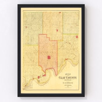 Vintage Map of Clay County, Missouri 1887