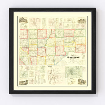Discover a piece of history with our beautifully restored 1865 map of Crawford County, Pennsylvania. Perfect for history buffs or anyone who loves local culture, this map is more than just decor—it's a conversation starter. With notable towns like Meadville and Titusville prominently featured, it’s a unique way to celebrate the rich tapestry of Crawford County's past.