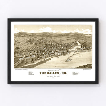 Vintage Map of Dalles, Oregon 1884