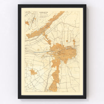 The map highlights Damascus's historical geography at a pivotal moment in time—making it not just decorative but educational as well. Whether you're treating yourself or giving someone special a gift they won't forget, this vintage print offers both style and substance right out of the box.