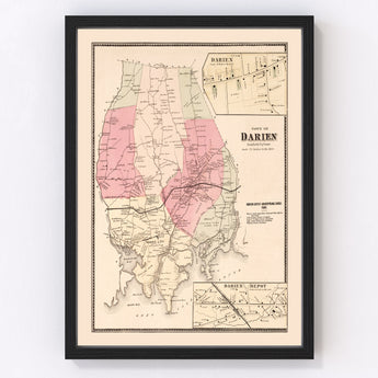 This map isn't just decorative; it’s a captivating conversation starter that's ideal whether you're furnishing your home or office space. A thoughtful gift choice too, it's bound to inspire storytelling and nostalgia amongst family and friends as you celebrate the unique heritage of Darien.