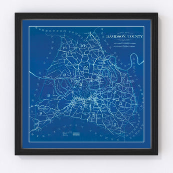 Whether you're looking for something special to hang in your living room or need a thoughtful gift for someone who appreciates some good local history trivia, this vintage map print is an excellent choice. It comes ready to hang straight out of the box—making it both convenient and stylish décor addition that sparks engaging conversations about Davidson County's rich history.