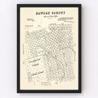 Experience a piece of Texas history with this beautifully restored 1892 map of Dawson County, where history enthusiasts can pinpoint locations like Lamesa and Welch in intricate detail. This vintage map print adds an authentic touch to any home or office. Specially crafted by Ted's Vintage Art, it serves as both a stylish decor piece and a fun conversation starter.
