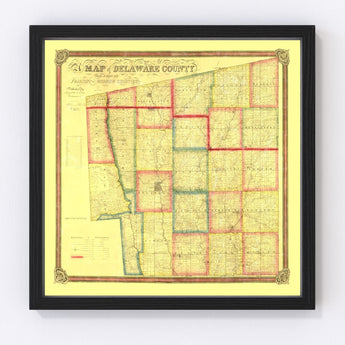 The map features notable towns such as Delaware City, Sunbury, and Ashley, making it a unique snapshot of Ohio's rich landscape during that era. Crafted by hand with superior materials, each framed piece is ready to enhance your wall decor right out of the box. Choose from our classic stained wood frame or opt for an unframed print on high-quality matte paper.