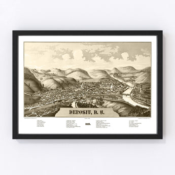 Step back in time with our exquisitely restored 1887 vintage map of Deposit, nestled in Delaware County, New York. Crafted with utmost attention to detail, this piece offers a unique glimpse into the past while remaining a timeless addition to any room. Whether you're adorning your home or spicing up your office, this map combines traditional elegance with an inviting touch.