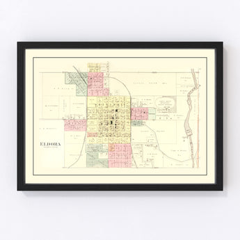 Discover a piece of history with our beautifully restored vintage map of Eldora, nestled in Hardin County, Iowa. Originally crafted in 1892, this map offers a glimpse into the past that's as enriching as it is charming. Whether you're decorating your office or brightening up a room at home, this classy and traditional piece is sure to fit right in.
