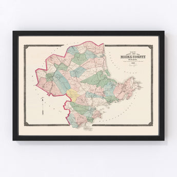 This piece serves as a thoughtful gift for history buffs and local enthusiasts alike; it's also a great addition to any home or office. Each framed version features solid wood stained frames that perfectly accentuate the timeless allure of this historic county map.