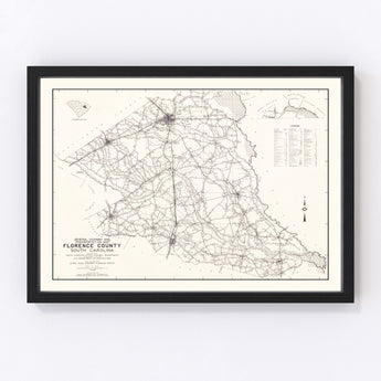 Discover a piece of South Carolina's rich history with our 1938 vintage map print of Florence County. This thoughtfully restored map showcases the nostalgic allure of the past, capturing cities and towns like Florence, Lake City, and Johnsonville in intricate detail. Whether you're a history enthusiast or simply love old-world charm, this print brings a timeless touch to any space.