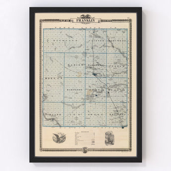 Introducing our beautifully restored 1875 vintage map of Franklin County, Iowa. This unique piece is perfect for history buffs and anyone who appreciates the charm of bygone eras. It’s not just a map; it’s a glimpse into the past highlighting notable towns like Hampton, Sheffield, and Latimer.