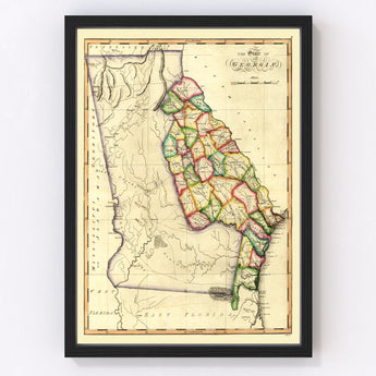 Discover a piece of history with this beautiful vintage map print of Georgia, originally crafted in 1810 and carefully restored by our team at Ted's Vintage Art. Whether you're a history buff or someone who cherishes local heritage, this map is a perfect addition to your home or office decor. It's more than just wall art—it's a conversation starter that brings the past to life.