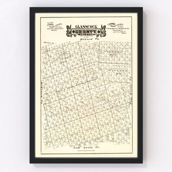 Discover a piece of Texas history with this charming 1888 map of Glasscock County, in the heart of the United States. Our team at Ted's Vintage Art has digitally restored this classic map to its original glory, allowing you to appreciate the detailed craftsmanship from yesteryears. Featuring noteworthy locales within the county like Garden City and St. Lawrence, this map serves as both an informative and decorative addition to any space.
