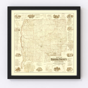 Vintage Map of Greene County, Illinois 1861