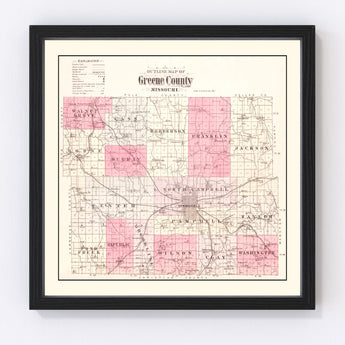 Discover the charm of Missouri's history with our beautifully restored vintage map of Greene County from 1904. Rich in detail and history, this piece is perfect for anyone with an appreciation for the past or local lore. Our maps have been expertly restored to retain their original beauty while ensuring longevity.