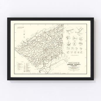 Discover the charm of Greene County, Tennessee, with our meticulously restored 1938 vintage map print. Whether you cherish tales of local history or appreciate fine craftsmanship, this piece is an exceptional addition to your home or office. Featuring towns like Greeneville and Mosheim, it's a delightful tribute to a bygone era.