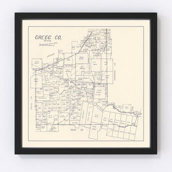 Discover a piece of history with our 1927 vintage map of Gregg County, Texas. Perfectly restored for today's home or office, this classic piece is a nod to days gone by. This ready-to-hang map showcases key towns like Longview and Kilgore, known for their rich local history and vibrant communities.