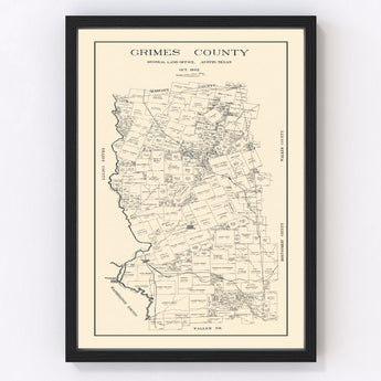 Our framed prints are handcrafted from solid wood and finished with a rich stain, while the canvas prints are created using durable polycotton material on solid wood stretcher bars. If you prefer an unframed option, our maps come printed on high-quality matte paper. Notable towns like Anderson and Navasota within Grimes County make this historical print an engaging conversation starter.