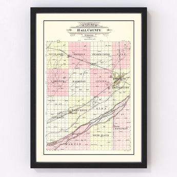 This particular piece features towns like Grand Island and Wood River—the heartbeat of Hall County's rich tapestry. Whether you select a framed piece or opt for an unframed version on high-quality matte paper, this map offers both beauty and historical significance without overwhelming adjectives or overdone flair.