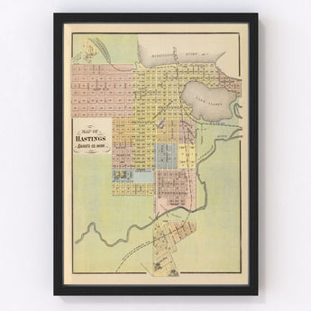 Dive into the rich history of Hastings, Minnesota with this beautifully restored 1874 vintage map. Perfect for local history buffs or anyone with a connection to Dakota County, this print adds a touch of classic charm to any home or office space. Whether showcased on your living room wall or displayed in your workspace, it's sure to spark interesting conversations about the historical layout and development of Hastings over the years.