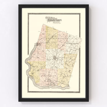 Discover the charm of late 19th-century America with our beautifully restored map of Howard County, Missouri, from 1897. This vintage map print is not only a delightful piece of history but also an exceptional piece to enhance your home or office decor. Perfect for anyone who appreciates the rich tapestry of local history, this print celebrates key sites like Fayette and Glasgow within Howard County.