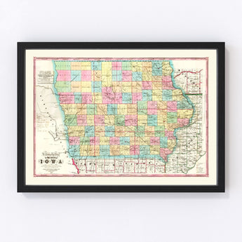 Step back in time with our 1855 vintage map of Iowa, beautifully restored to highlight the rich history of this iconic state. Perfect for those who appreciate local heritage, this map is more than just decor—it's a journey through time. With its intricate detailing and historical significance, it's an ideal conversation starter and a meaningful gift for history enthusiasts.