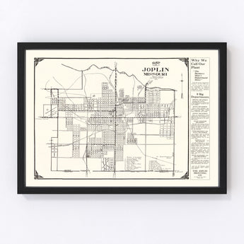 Take a step back in time with this beautifully restored vintage map print of Joplin, nestled in Jasper County, Missouri. Originally created in 1923, this stunning piece of history has been lovingly restored by our team to ensure that every line and detail stands out just like it did almost a century ago.