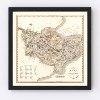 Vintage Map of Kent County England, 1806