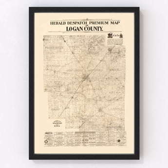 Choose from canvas prints made with polycotton on solid wood stretcher bars or unframed prints on premium matte paper for diverse display options. This Logan County map not only serves as an elegant decor piece but also celebrates the rich tapestry of community life from over a century ago—ideal for anyone connected to this historical Illinois region.