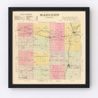 Discover the charm and history of Madison County, Nebraska with this beautifully restored 1885 vintage map. Perfect for history buffs or anyone with a soft spot for local lore, this piece not only showcases the previous landscapes but also celebrates towns like Norfolk and Madison. It’s crafted with premium-quality materials, making it a fitting addition to your home or office.