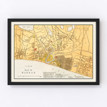 This map celebrates the cultural and historical tapestry of Madras while seamlessly integrating into modern settings—perfect for anyone with an appreciation for vintage charm and local stories.