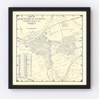Discover the charm of Martinez with our beautifully restored 1920 vintage map. Perfect for anyone with a love for local history, this piece captures the essence of Contra Costa County in California as it was over a century ago. Whether you're adorning your home or office, this map's traditional design adds a touch of class to any space and serves as a great conversation starter.