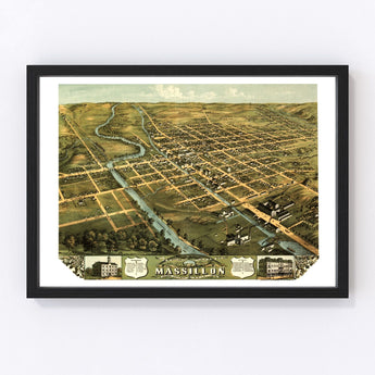 This beautiful, digitally restored vintage map from 1870 showcases Massillon in Stark County, Ohio. It’s a wonderful gift for history buffs or anyone with ties to the area. Presented with remarkable quality, this print is more than a decorative piece—it’s a fascinating glimpse into local history that can spark conversations in your home or office.